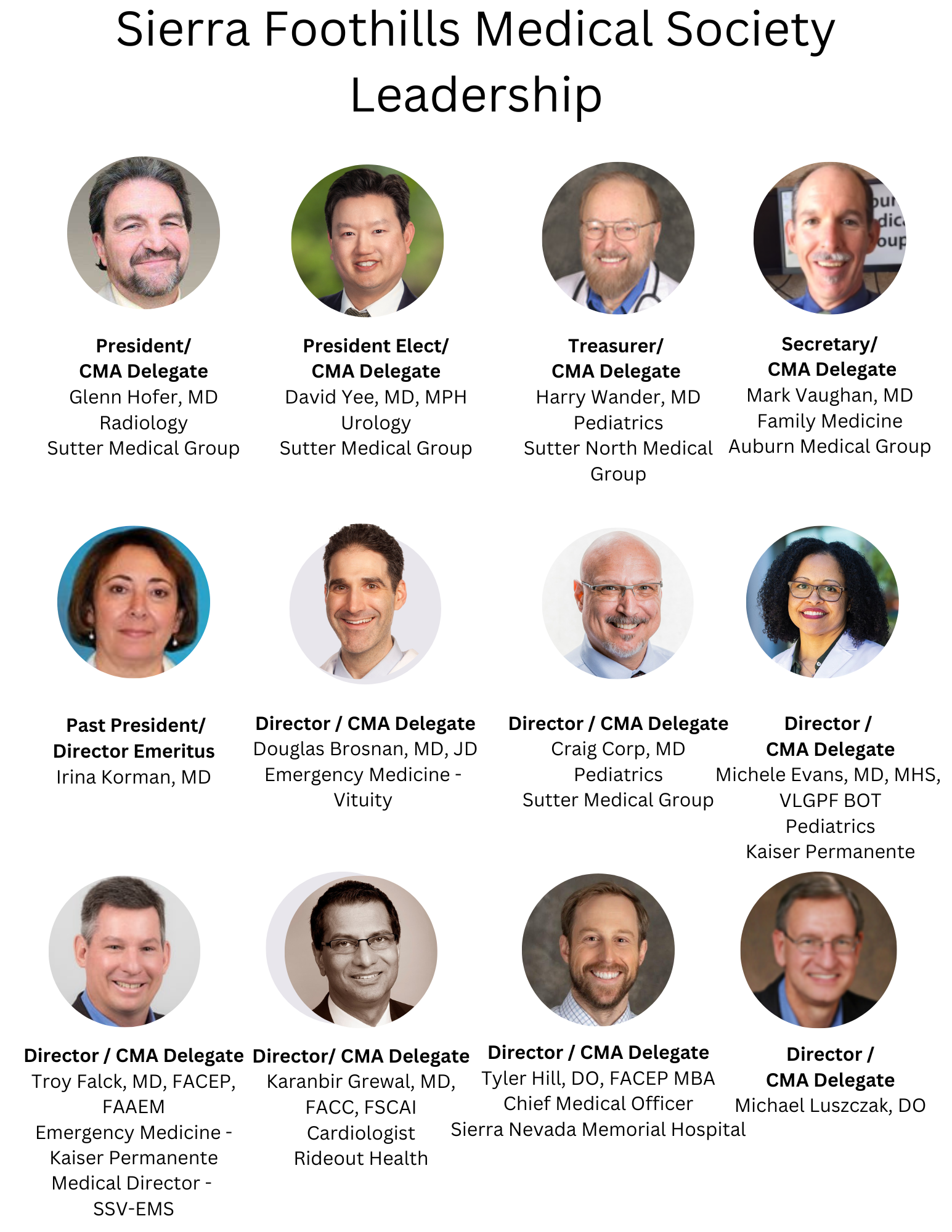 Sierra Foothills Medical Society Leadership